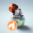 The Pyro Grenade can be deployed by throwing it. The moment it impacts on a surface or contestant, it instantly spreads fire to all surfaces in a spherical area, even through walls. Any contestants that come into contact with the fire take contact damage over time and will also be set on fire for a few seconds to take additional damage.