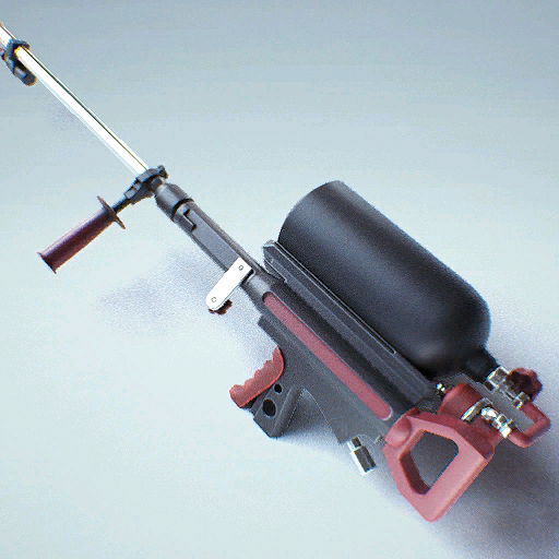 The trigger can be held to continuously release a short-ranged stream of fire that damages opponents and sets them on fire.