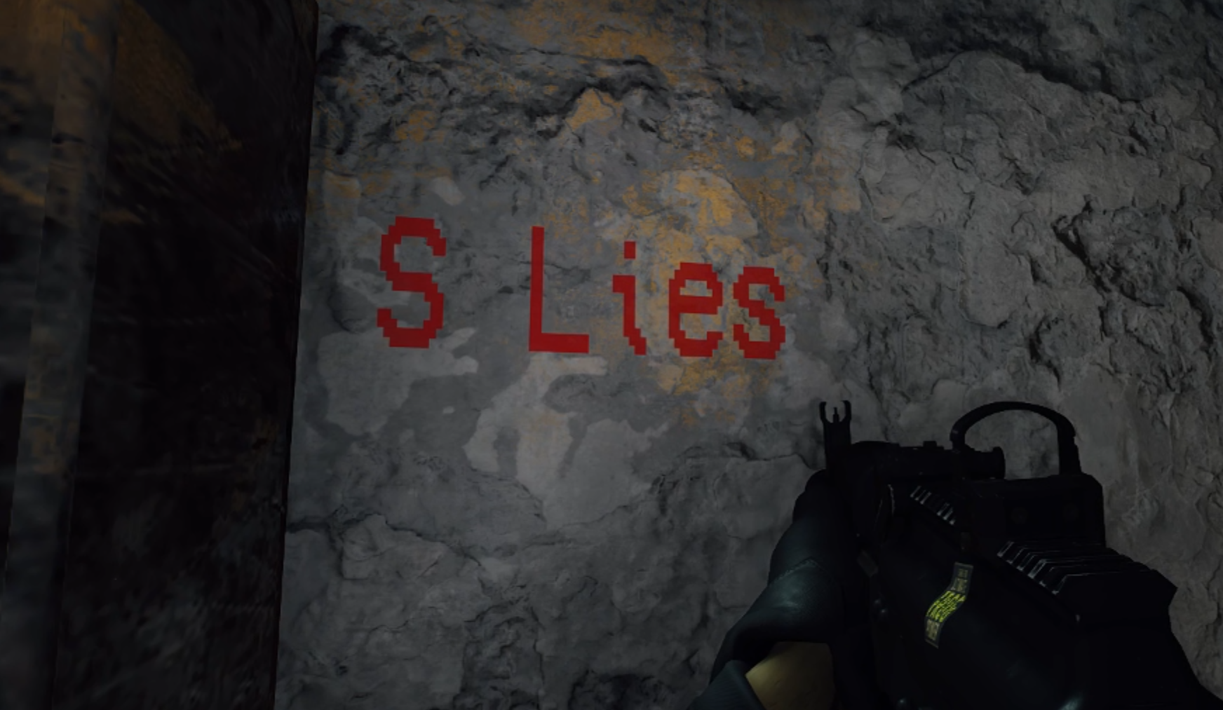 On June 16, 2023, during Closed Beta 2 (CB2), a message was found on Monaco by hunter TheSkyFox. It is hidden behind a destructible wall under the construction area and reads: "S Lies." It is presented in orange, pixelated text. The message is an anagram for the locations of the white rabbits in Seoul, and has as of yet unknown lore implications, appearing without context alongside "L Lies" in a MultiCo document leaked by CNS.