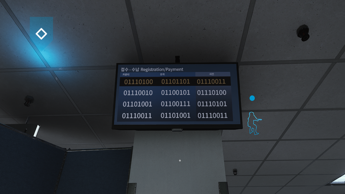 On March 11, 2023, binary code was noticed on a screen in the Infirmary of Seoul by hunter Vogue. The binary translates in the format as column down, left to right and spells Trismegistus.