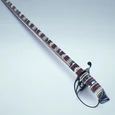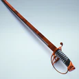- The sword appears to be modeled after the cutlass, a common naval weapon between the 17th and 19th century (the age of sail).